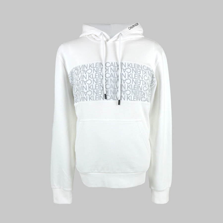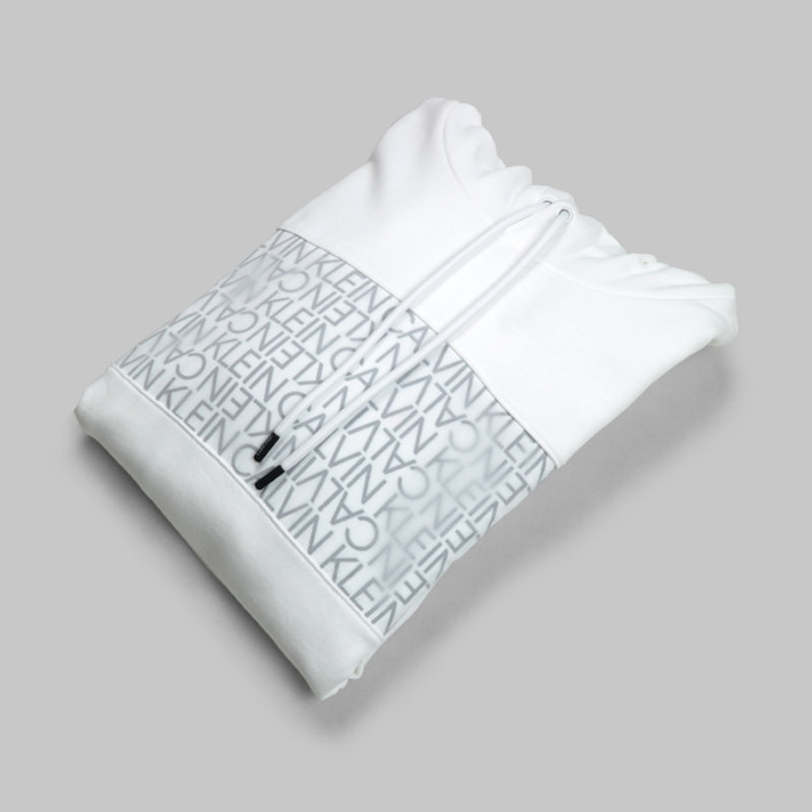 Calvin Klein férfi kapucnis pulóver, fehér, feliratos, organikus pamuttal