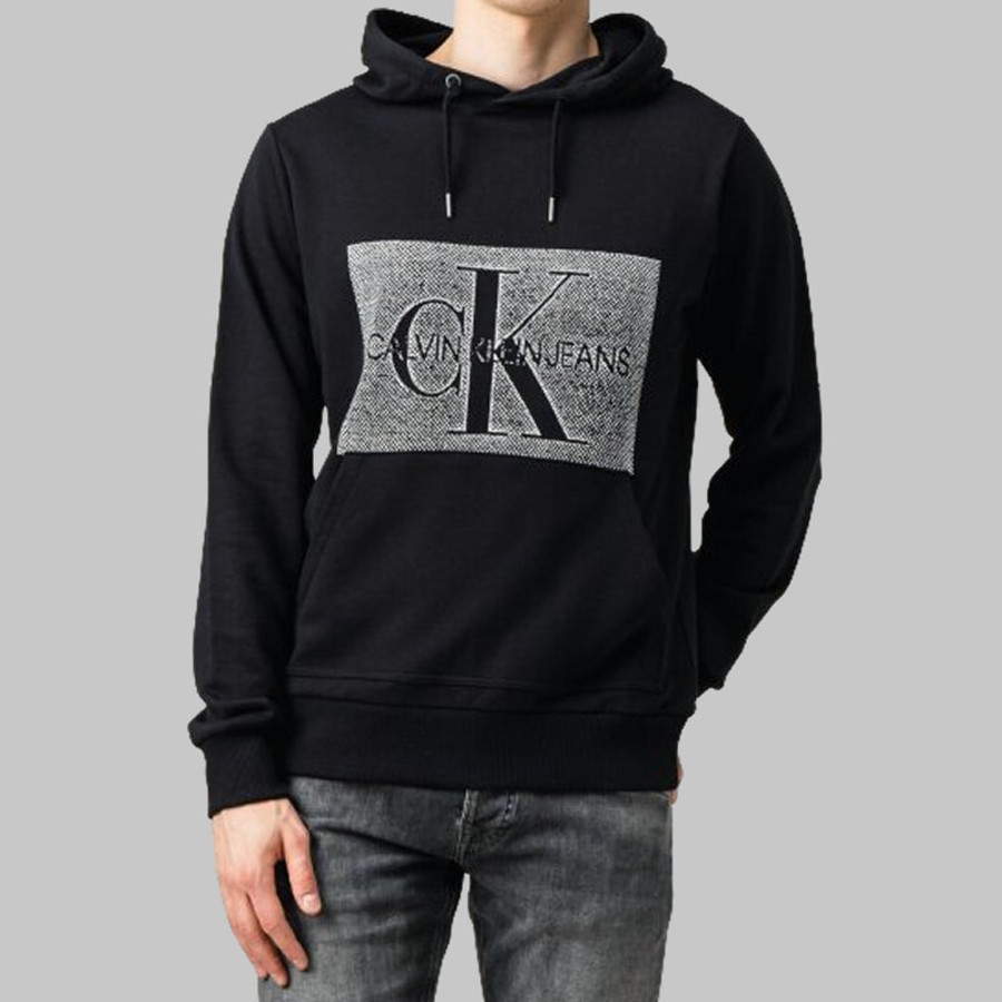 Calvin Klein férfi kapucnis pulóver, fekete, feliratos, 100% pamut