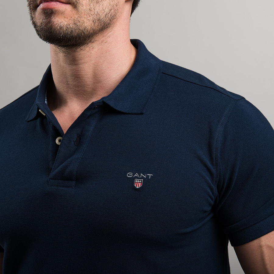 Gant férfi galléros póló, sötétkék, 100% pamut