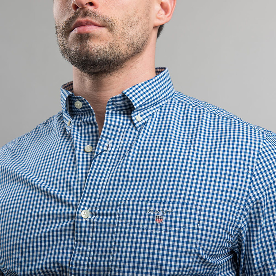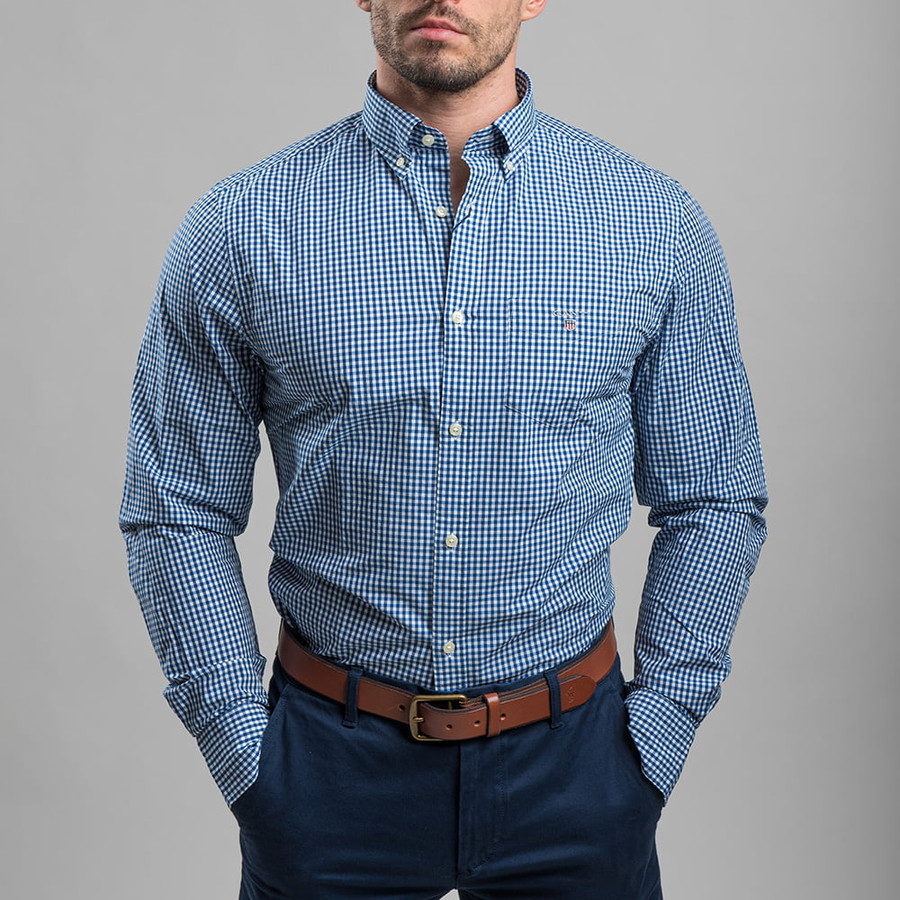 Gant férfi hosszú ujjú ing, kék kockás, 100% pamut, regular fit