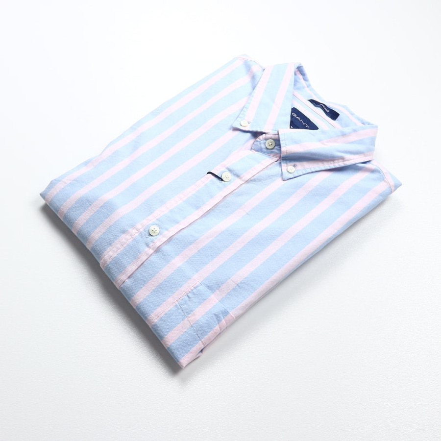 Gant férfi hosszú ujjú ing, rózsaszín-kék csíkos, 100% pamut, oversized