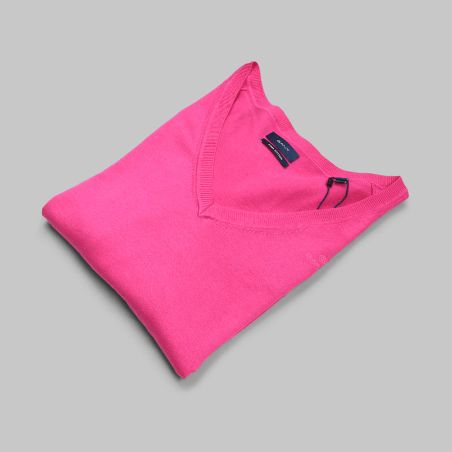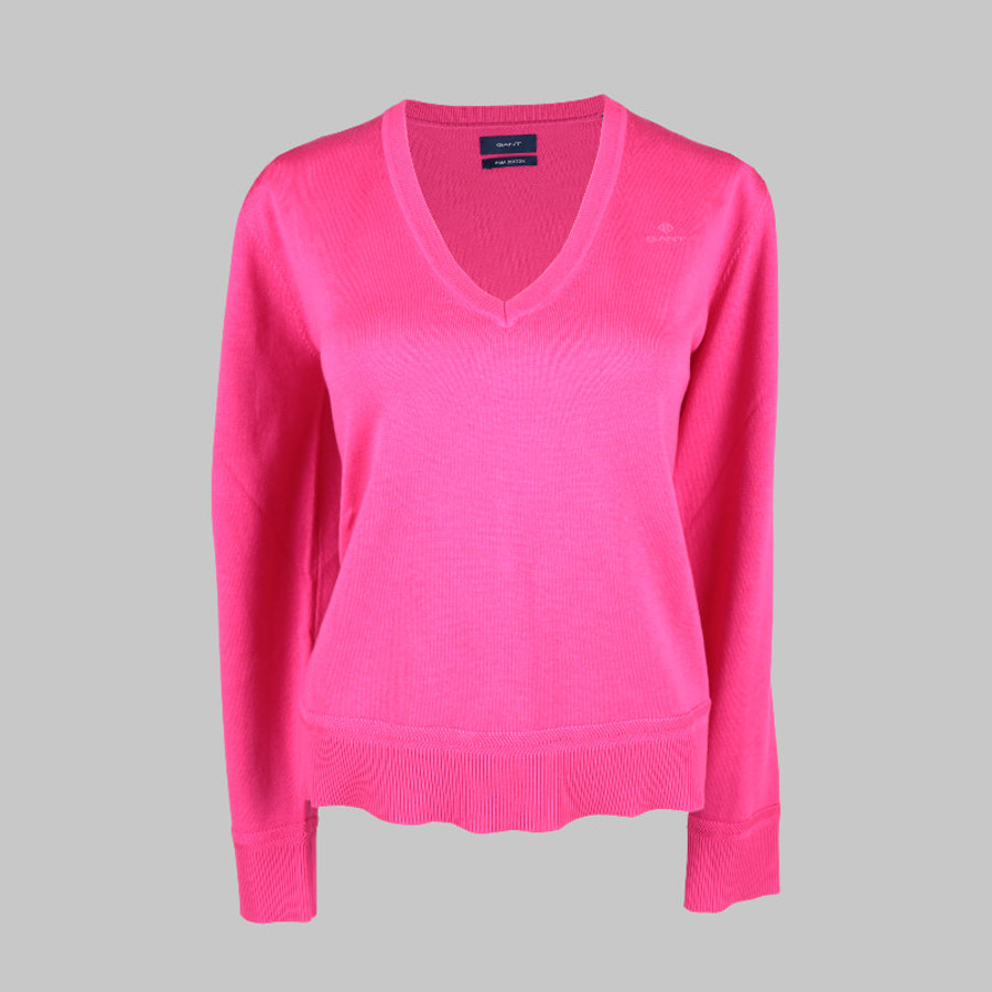 Gant női v-nyakú kötött pulóver, rózsaszín, 100% pamut