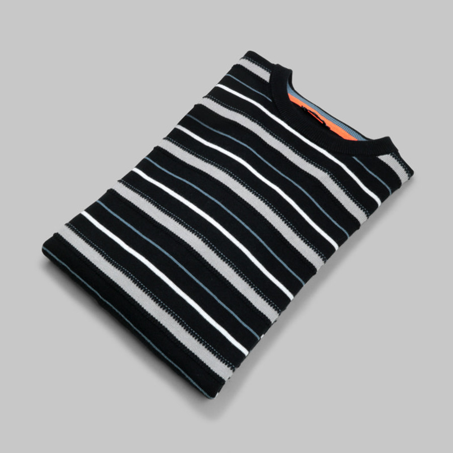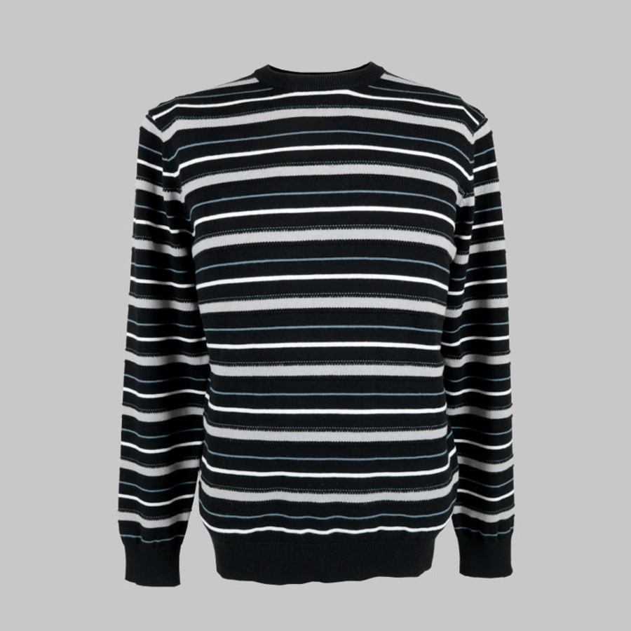 Guess férfi kötött pulóver, fekete-fehér csíkos, 100% pamut