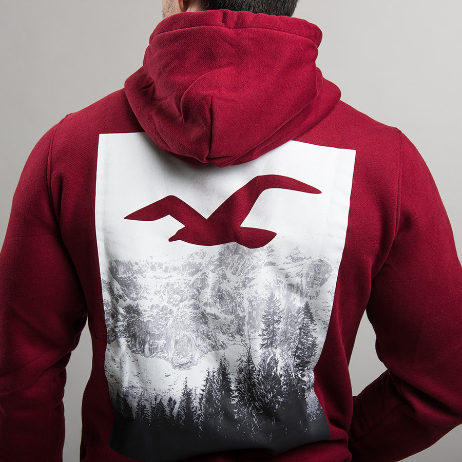 Hollister férfi kapucnis pulóver, bordó