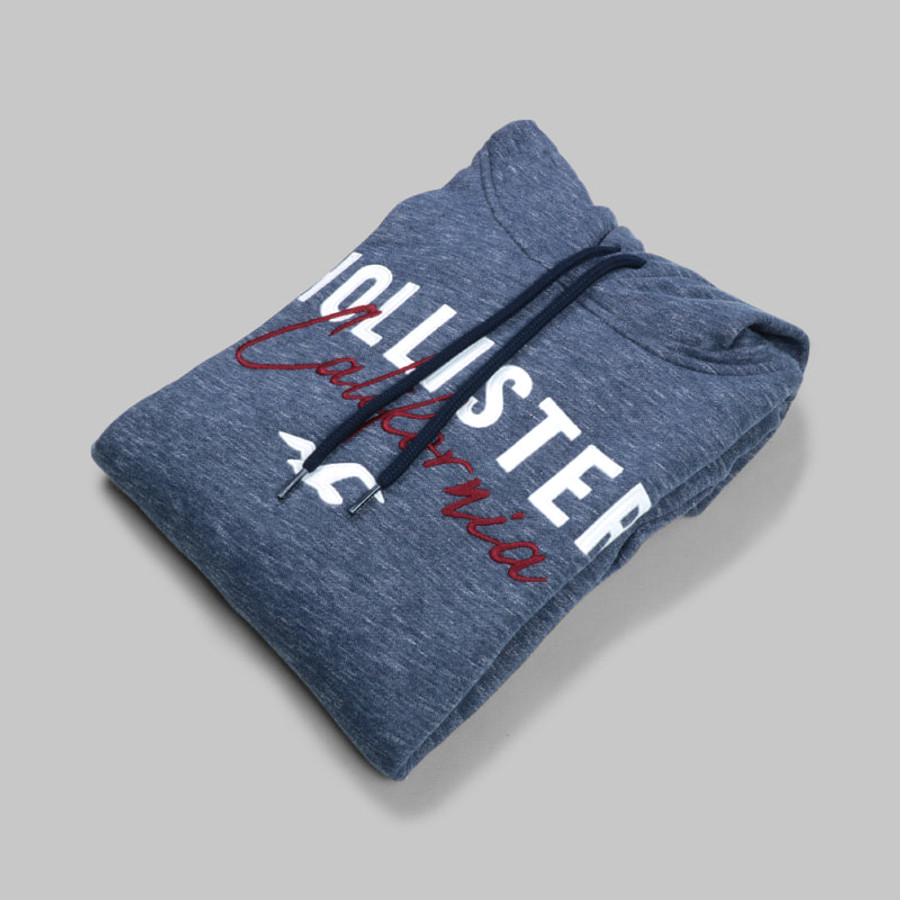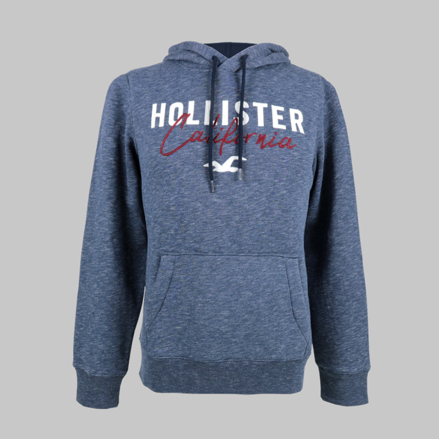Hollister férfi kapucnis pulóver, kék, feliratos