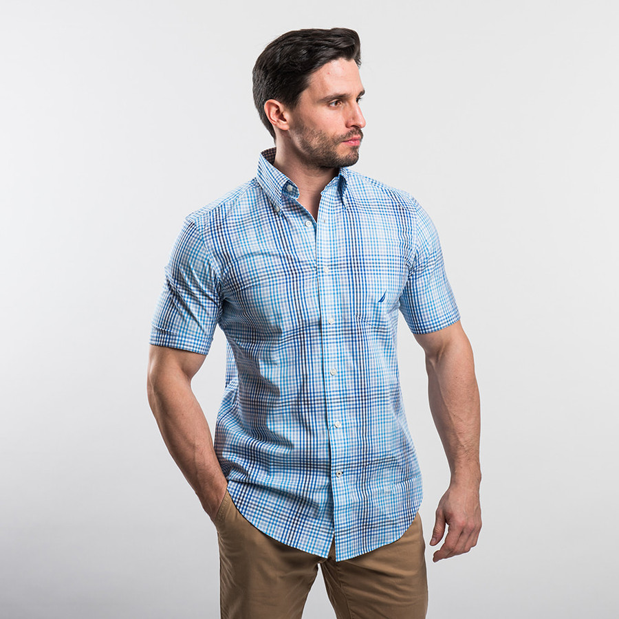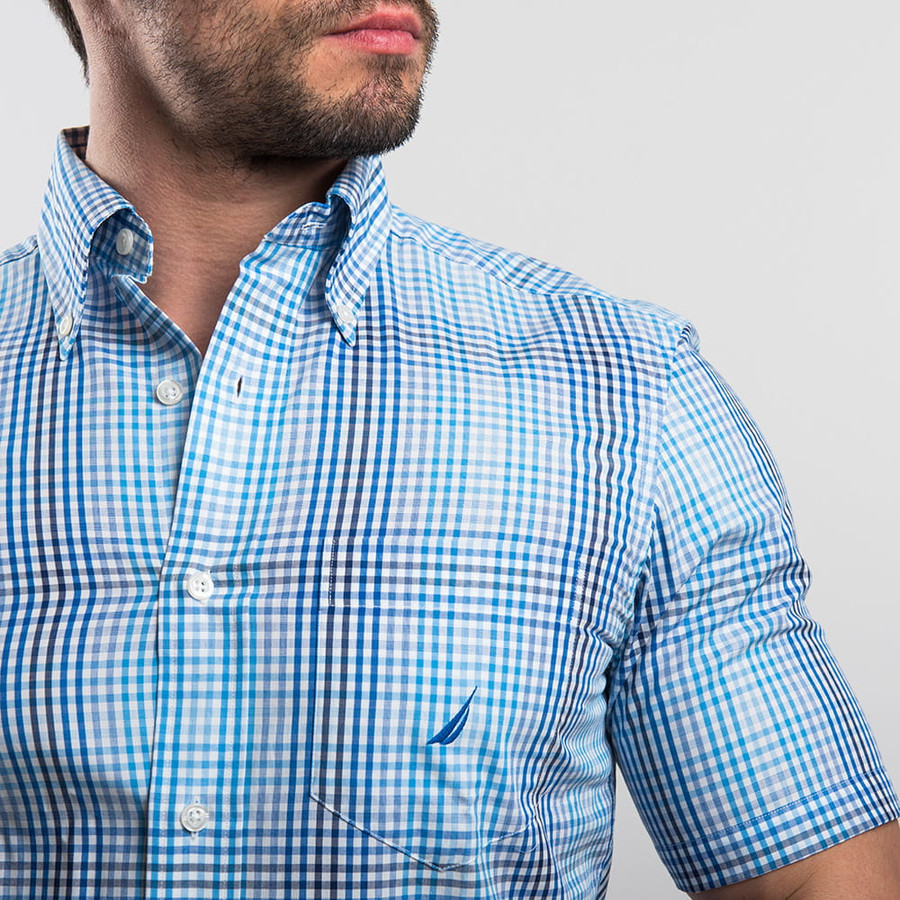 Nautica férfi rövid ujjú ing, kék kockás, 100% pamut