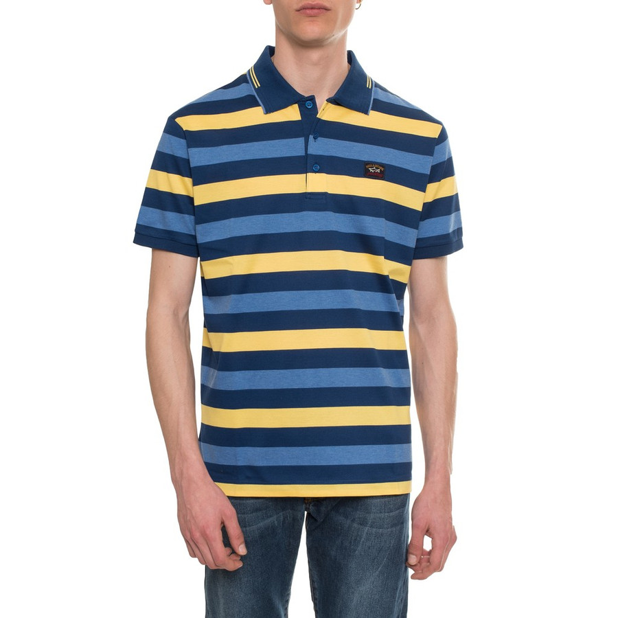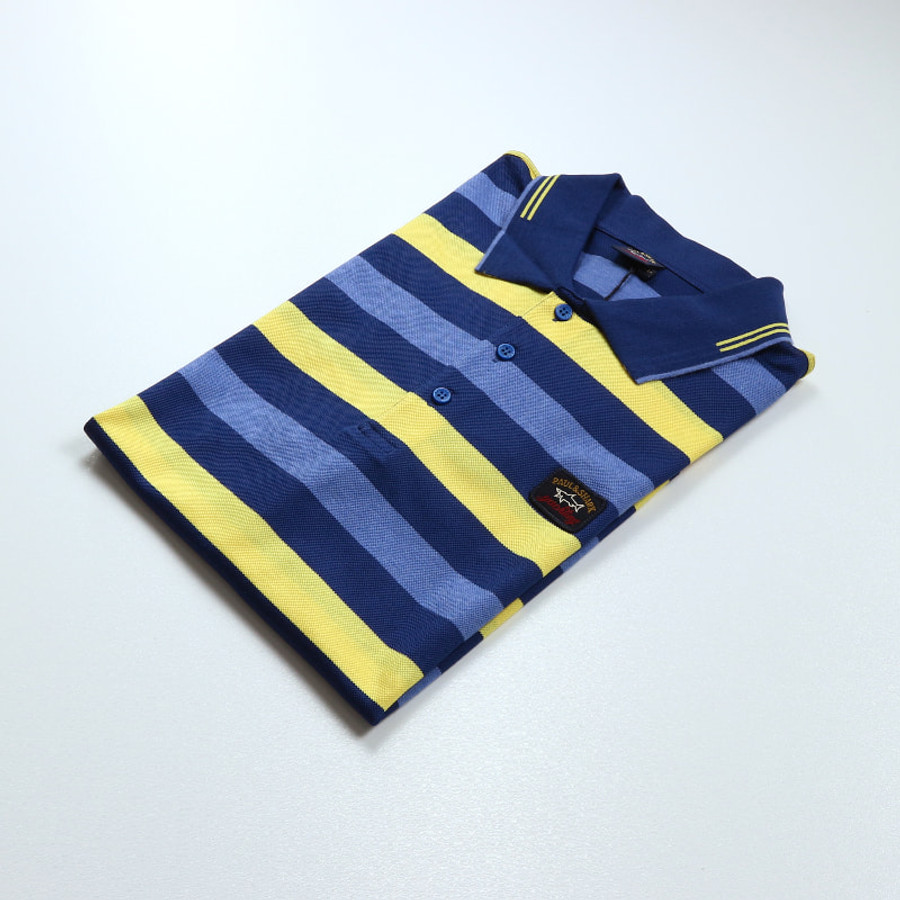 Paul & Shark férfi galléros póló, kék-sárga csíkos, 100% pamut