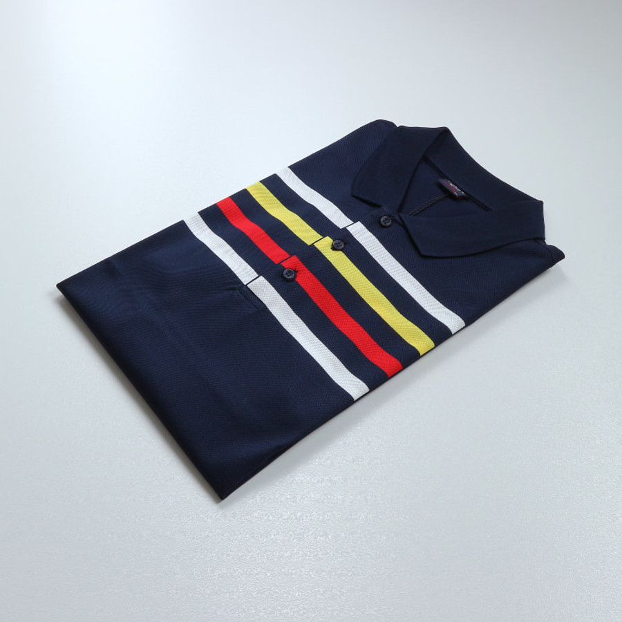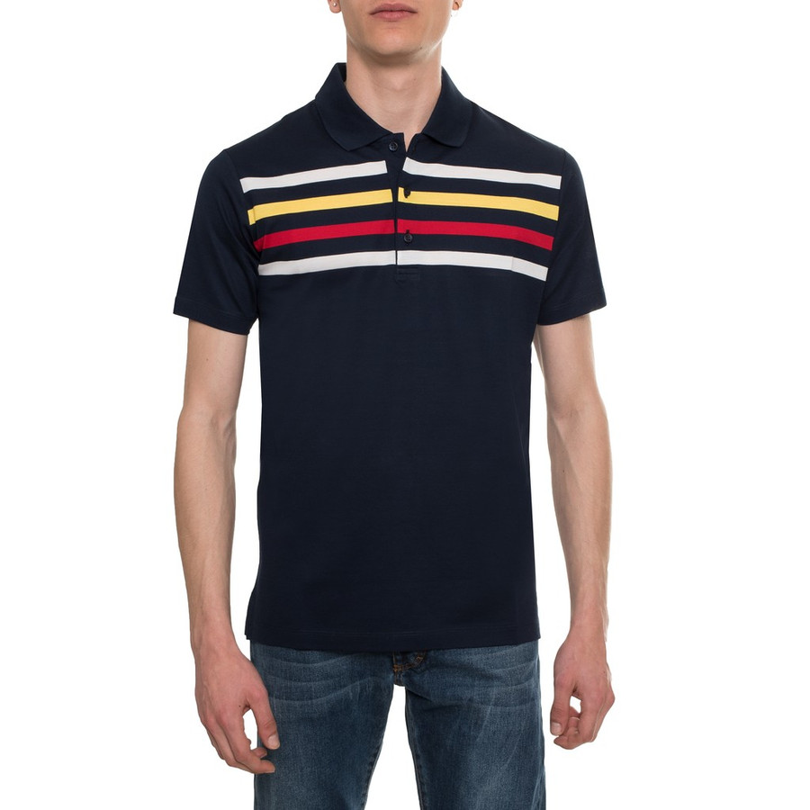 Paul & Shark férfi galléros póló, sötétkék-színes csaíkos, 100% pamut
