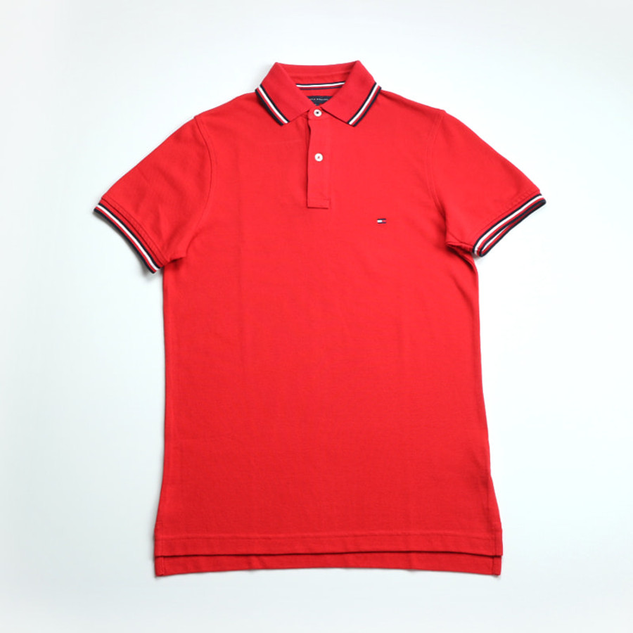 Tommy Hilfiger férfi galléros póló, piros, 100% pamut, slim fit