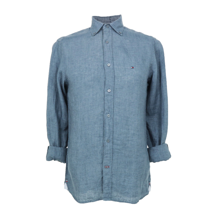 Tommy Hilfiger férfi hosszú ujjú ing, kék, 100% len, regular fit