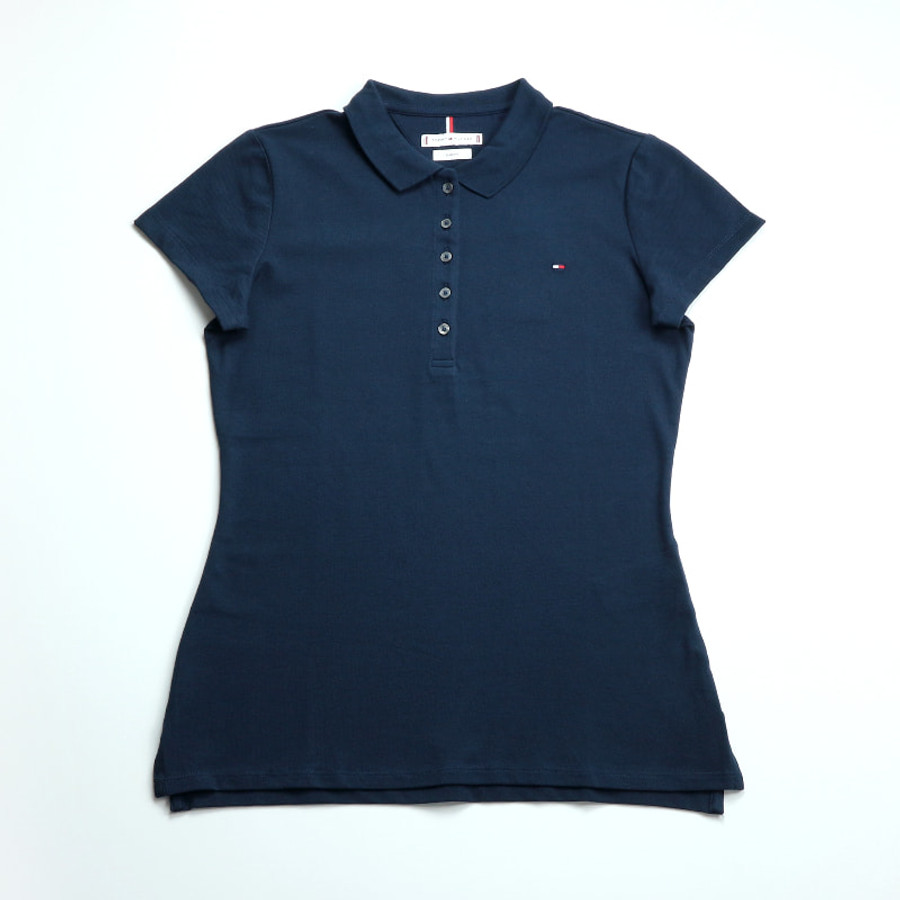 Tommy Hilfiger női galléros póló, sötétkék, pamut, slim fit